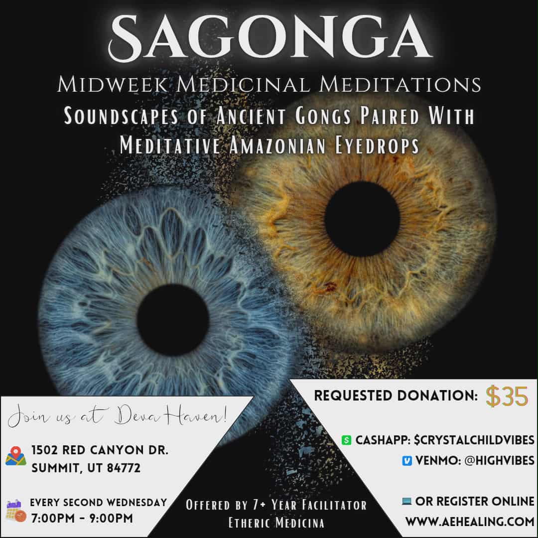 Sagonga [suh-gong-uh]: An immersive and restorative experience that combines the ancient power and sounds of multiple gongs with the Amazonian plant medicine eyedrop Sananga.